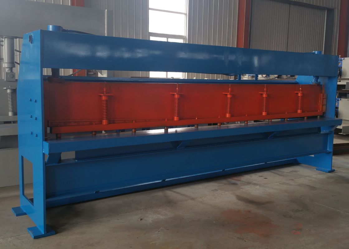 The steel sheet shearing machine is used to cut the sheet sheet into small pieces as per request. The max thickness of the steel sheet is 1.0mm, the max width of the steel sheet is 4m or 6m. Hydraulic station power 3KW.